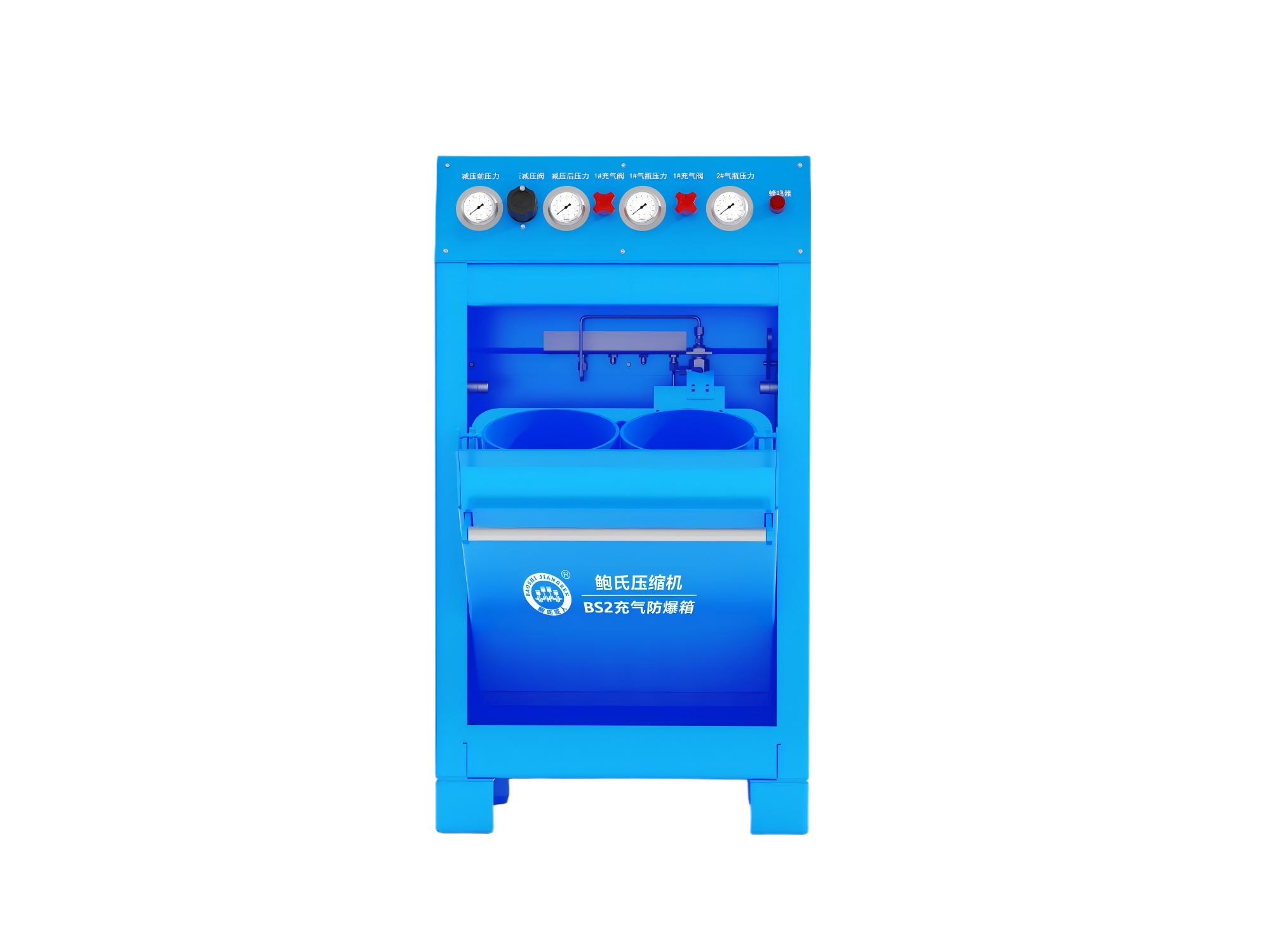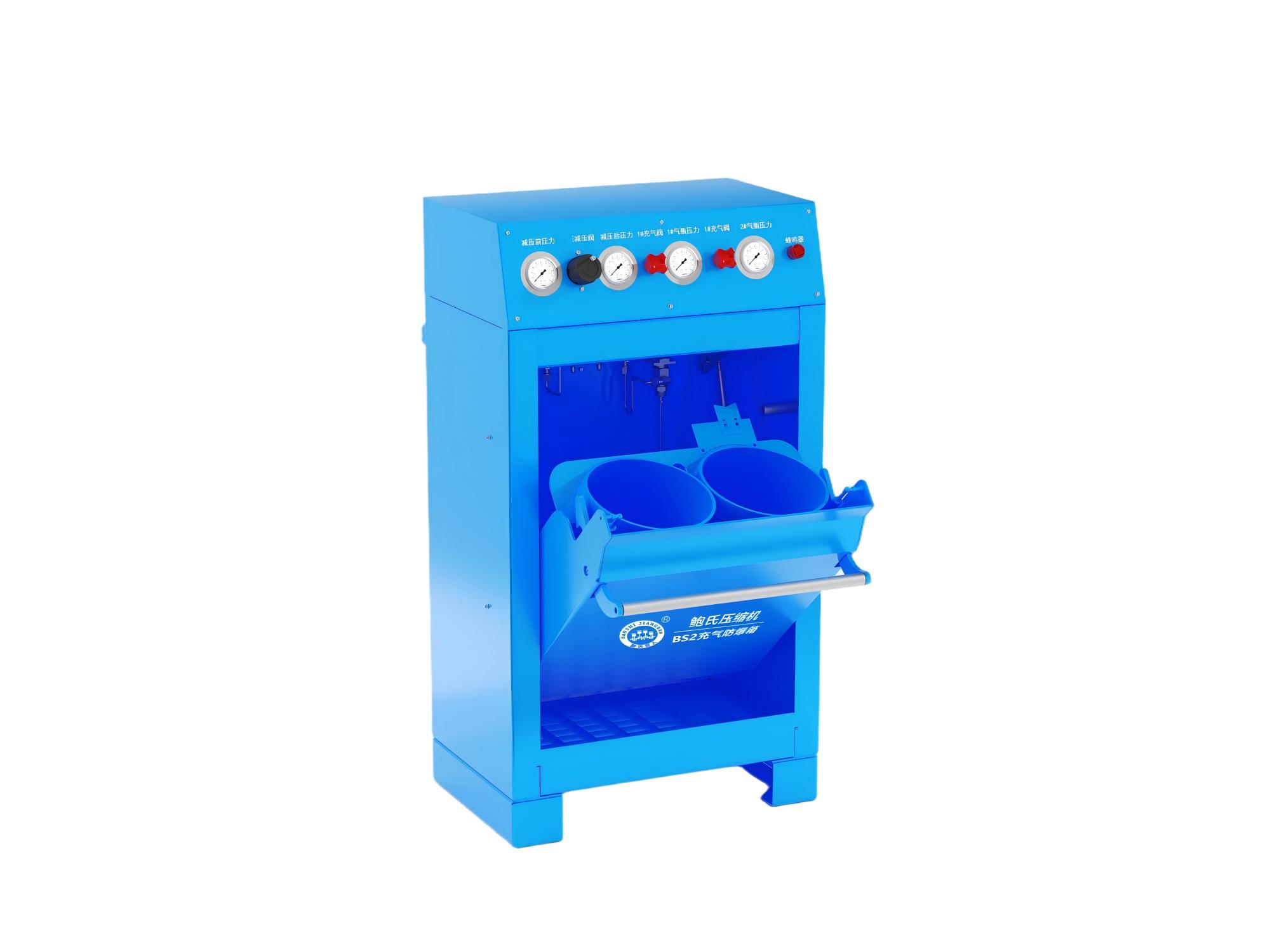 鲍氏 BS2 充气防爆箱(带减压装置)是一款高配型性价比高,安全可靠的产品,主要应用于潜水、消防,彩弹射击、航空航天、石油化工、气密性检测、爆破、精密仪器等领域。是为了保护气瓶充装人员的安全,在高压气体压缩充装气瓶的过程中,如果没有充气防爆箱装置,很难避免安全隐患的事故发生,鲍氏 BS2 防爆充气箱可以阻挡隐患气瓶在爆破时产生的高速破片对气瓶操作人员及设备财产的伤害,是值得信赖的高压充气防爆装置。
